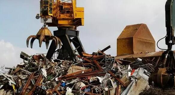 圖為大型的抓斗機正在作業,準備將下面的固體垃圾抓起后,裝車打包運走。